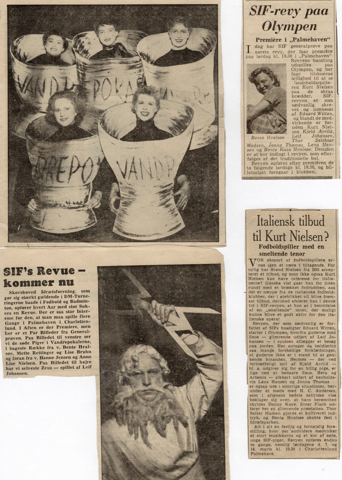 Gode avisbilleder fra 1953 revyen, også med et hint om Kurt Nielsen (Nikolaj) eventuelle Italiens tilbud